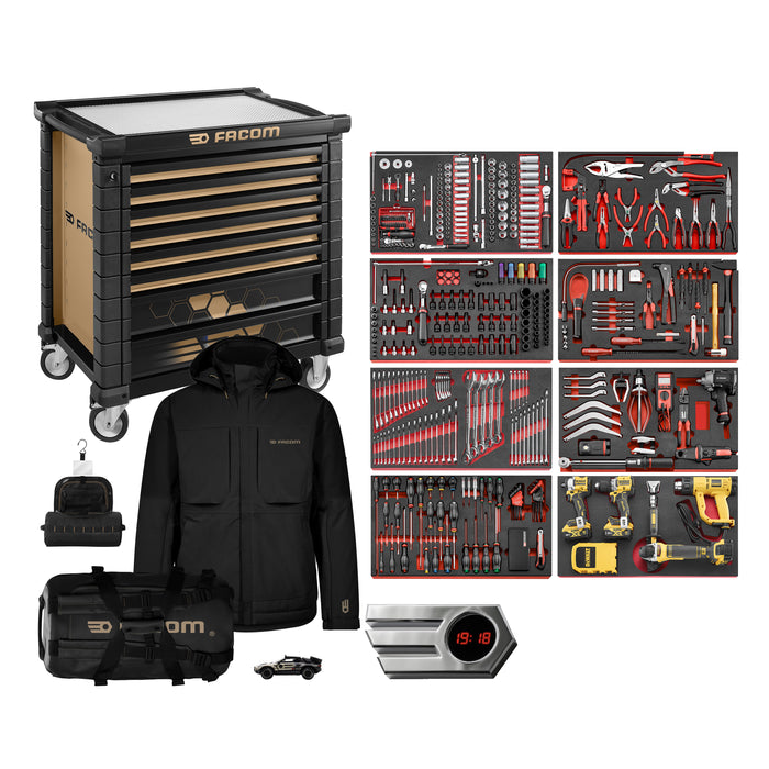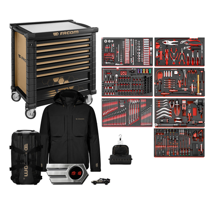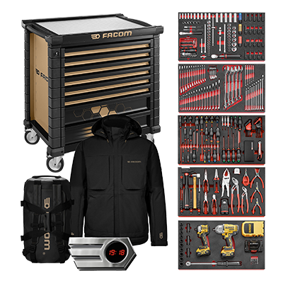🎁 SAC DE VOYAGE, VESTE IMPERMÉABLE, TROUSSE, VÉHICULE MINIATURE & HORLOGE FACOM OFFERTS