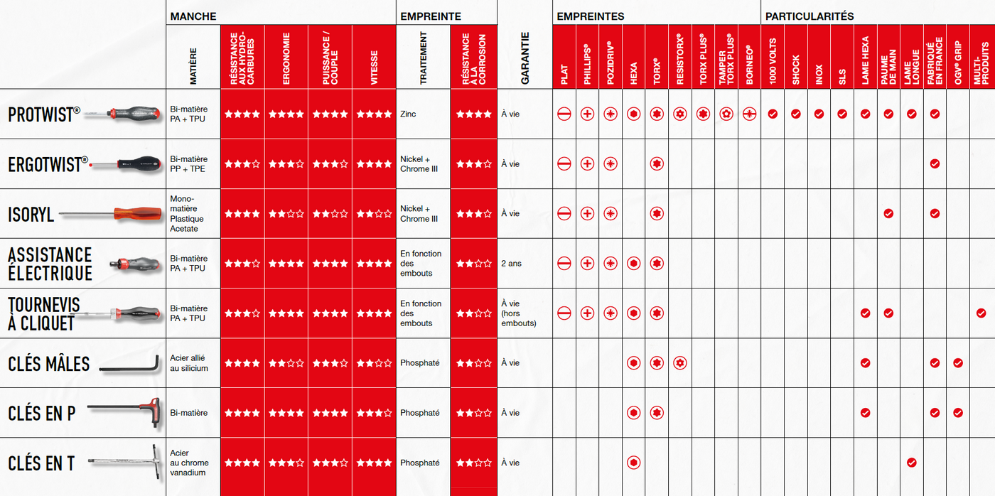 Nos tournevis PROTWIST® et ERGOTWIST® possèdent de nombreuses technologies qui vous épargneront des efforts inutiles :