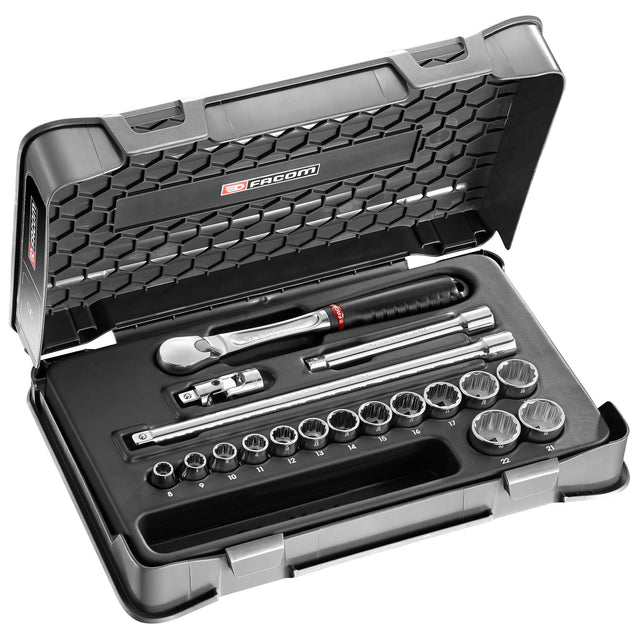 Coffret douilles, 12 pans métriques, 18 pièces, 3/8"