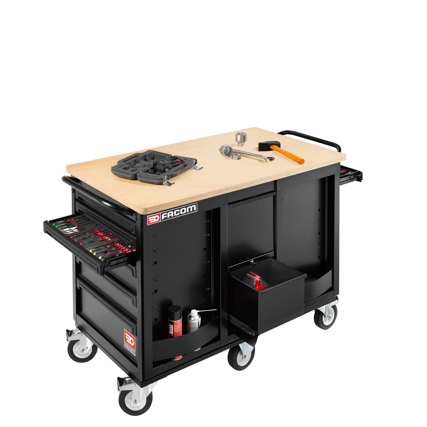 Établi mobile de maintenance lourde à 14 tiroirs + placard.